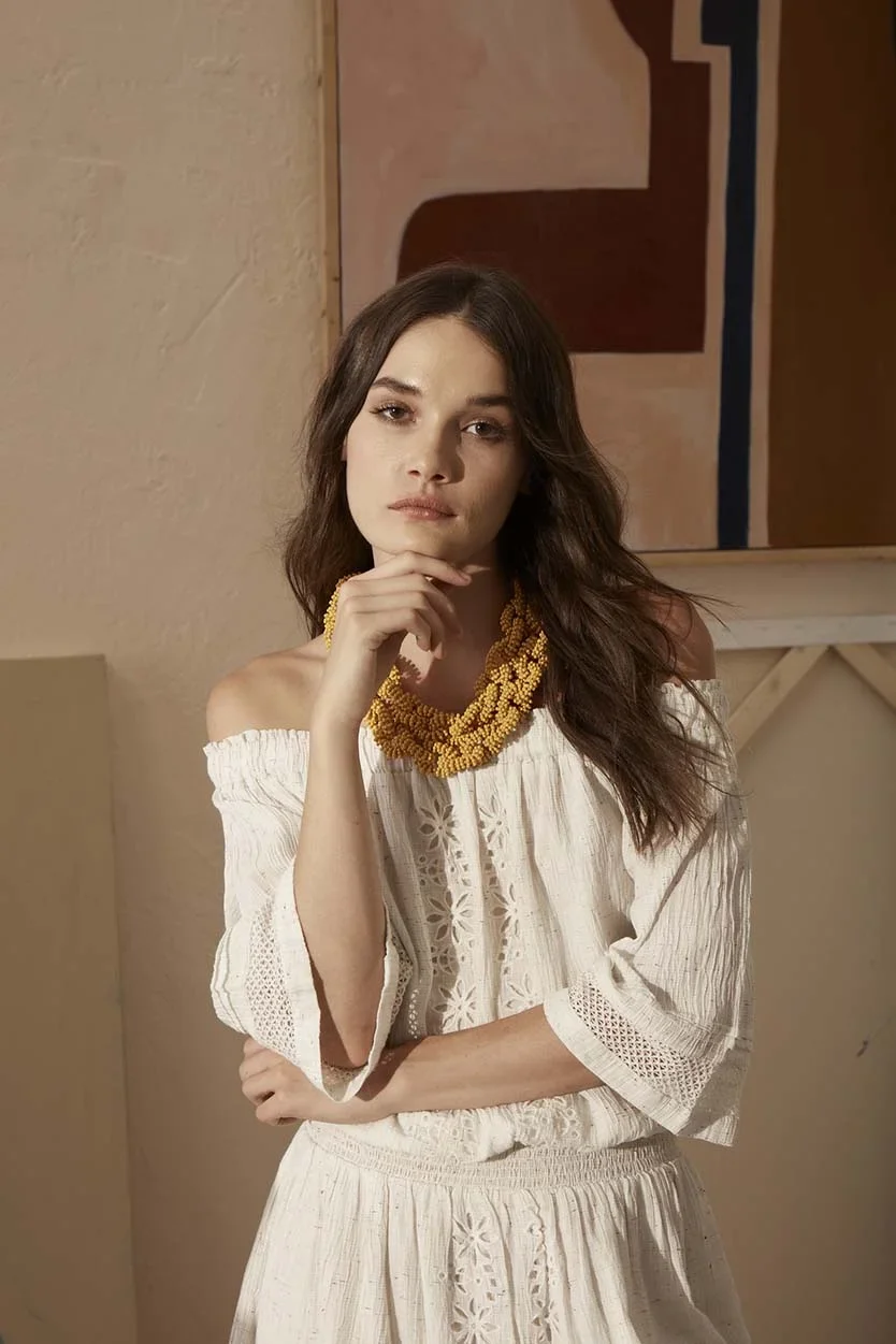 Original concept, silhouette, fabric and trim design by Noelle Cruz Bates.